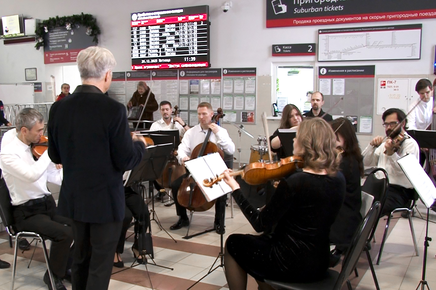 В течение часа в здании вокзала звучали классические произведения Чайковского, Штрауса, а также аранжировки современных мелодий.