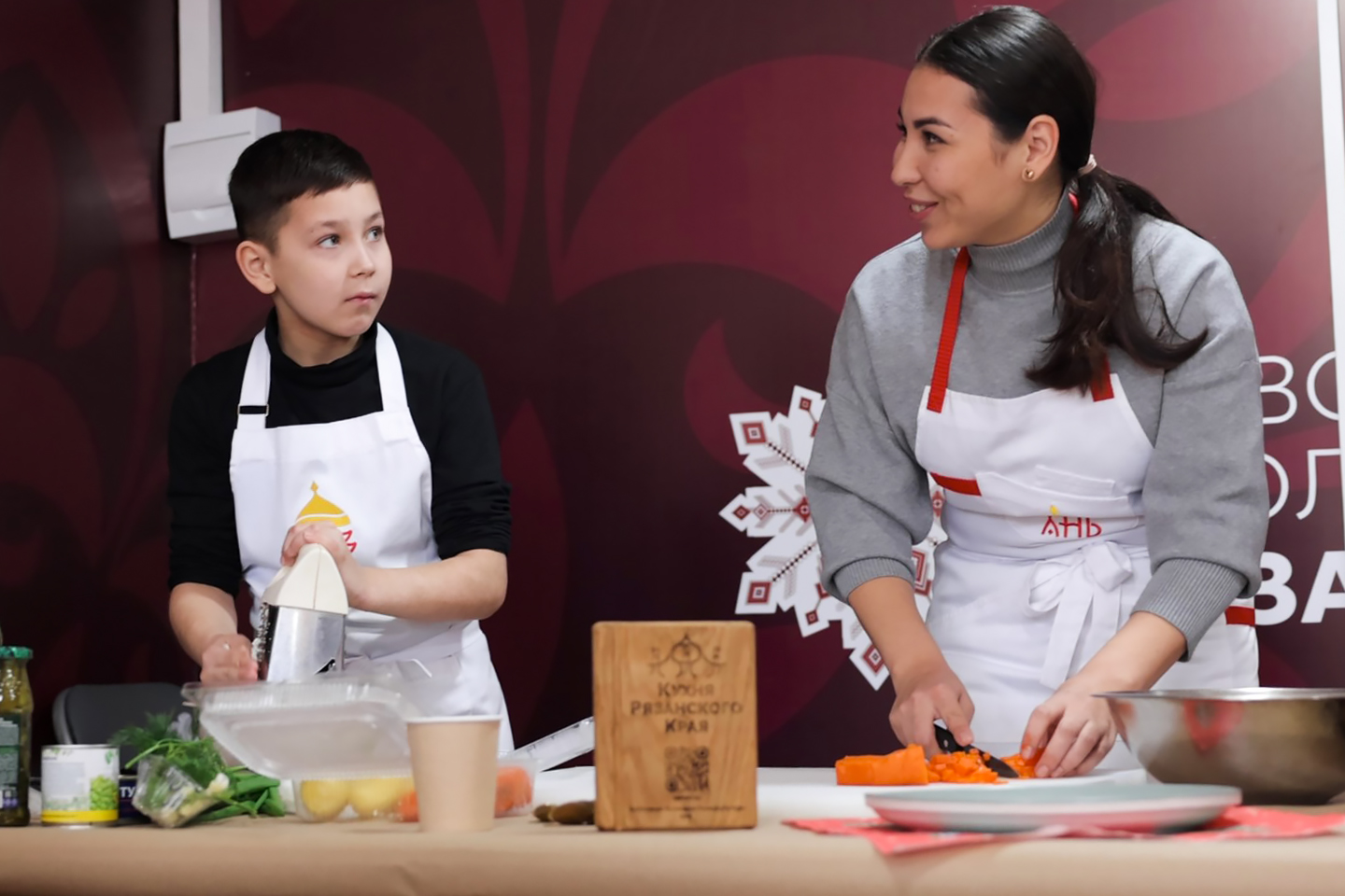В кулинарном состязании победила семья Луканьковых, которая представила салат с заправкой из бальзамического соуса вместо майонеза. Авторский «Новогодний венок» сделали из зелени, креветок и мандаринов.