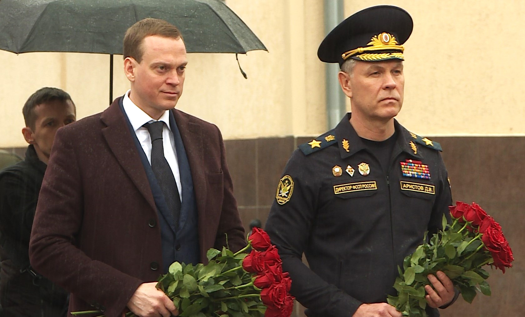 Губернатор Павел Малков и главный судебный пристав России Дмитрий Аристов, который находится в Рязанской области с рабочим визитом, возложили цветы к Вечному огню.